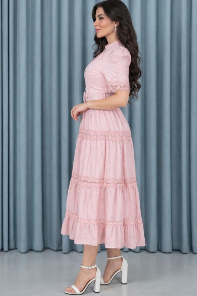 أضفي لمسة من الأنوثة والرقي إلى إطلالتك مع هذا الفستان الرائع المصنوع من الدانتيل الفاخر، بتصميم عصري أنيق وأكمام قصيرة مزينة بتفاصيل ناعمة. يأتي الفستان مزودًا بحزام خصر أنيق لإبراز جمال قوامك، كما أن القماش مزين بنقوش أنثوية جذابة. الطول المثالي والتصميم الطبقي يجعلانه مناسبًا للسهرات والمناسبات الخاصة، ليمنحك إطلالة ساحرة تعكس ذوقك الرفيع.