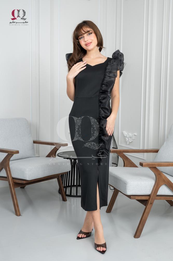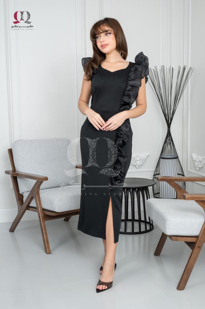 ✨ استعدي للفت الأنظار مع فستان سهرة اسود الذي يجمع بين الأناقة والجاذبية في تصميم واحد. يتميز هذا الفستان بتفاصيل الكشكش الناعمة على جانب واحد، ما يمنحكِ لمسة عصرية وجريئة. تصميمه الضيق والمحتشم مع فتحة جانبية خفيفة يضفي إطلالة أنثوية جذابة مثالية للمناسبات الخاصة والسهرات.
